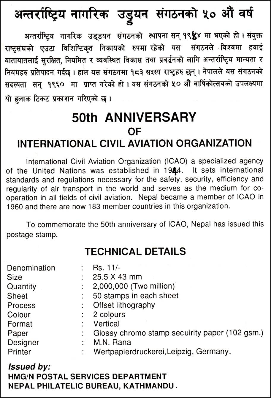 Nepal : 50th Anniversary of ICAO