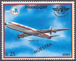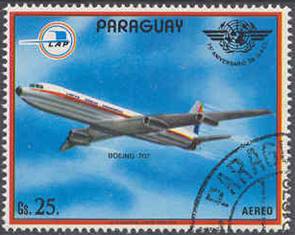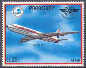 Boeing 707 from Lineas Aereas Paraguayas (LAP), the state airline of Paraguay. Airmail stamp. |
