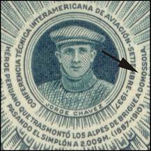 Jorge Chávez Dartnell (1887‑1910), French‑born Peruvian aviator, who flew in a Blériot XI monoplane over the Alps from Brigue, Switzerland to Domodossola, Italy, and died of plane‑crash injuries. The town, where Chávez’s flight ended, is called Domodossola, earlier known as Domo d’Ossola (in the Ossola valley, Piemont, Italy). However, the stamp mentions the name of Domossola (misspelling of the city’s name).