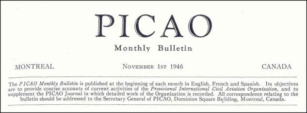 Front page of the first issue of the PICAO Monthly Bulletin (November 1946). |