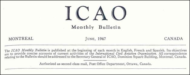 Front page of the first issue of the ICAO Monthly Bulletin (June 1947). |