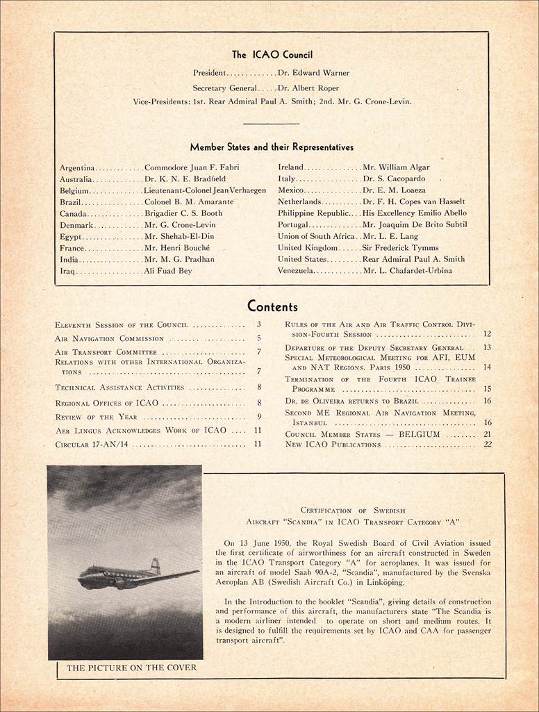 August-September 1945 Front page of the first issue of the PICAO Journal (Number 1), |