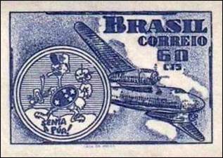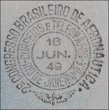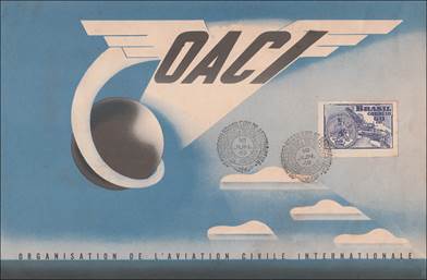 This pamphlet in French (with the 4 cover pages shown here) describing ICAO’s activities was dated 1949 or right before, as the 60-cent imperforate stamp shown on this copy was released by Brazil on 18 June 1949 to honour the Brazilian Air Force in Italy; the stamp shows the badge of the Air Force, a Douglas DC-3 aircraft and the map of Italy in the background. The cancel indicates: 2O CONGRESSO BRASILEIRO DE AERONAUTICA, which was held in Rio de Janeiro. The purpose of this Conference was to study the development of the national aeronautical industry in Brazil.