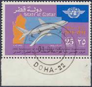 Airbus A320, ICAO logo, map of Qatar and grey rectangle. Watermarked paper.