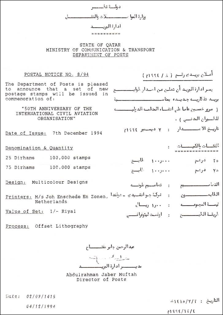 STAMP ISSUES RELATED TO ICAO (1994-1995)
