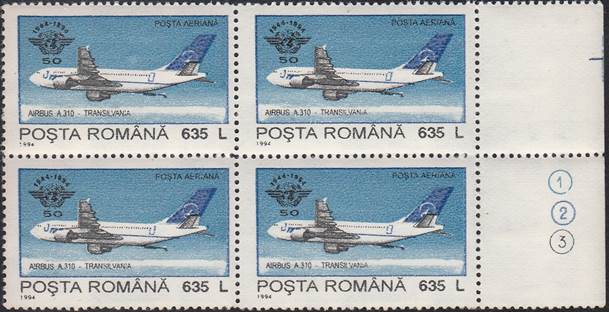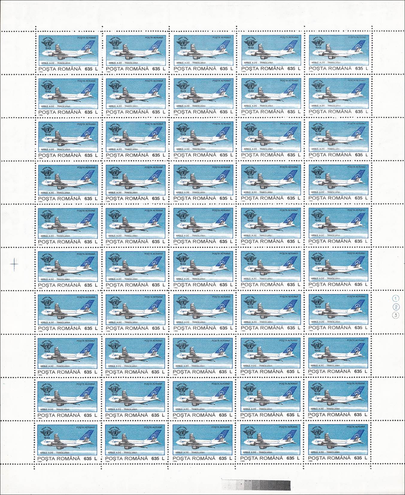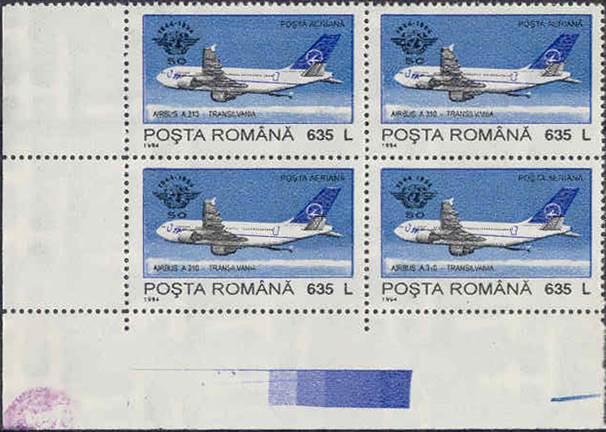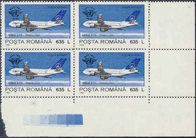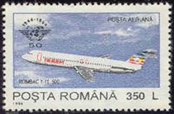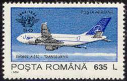 Airbus A310 of Transylvania Airlines with the TAROM logo. Printed on paper with watermarks. This stamp was later surcharged on 19/05/2000 (see by clicking on the following link Romania - Means of transport - Surcharges). |