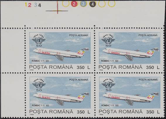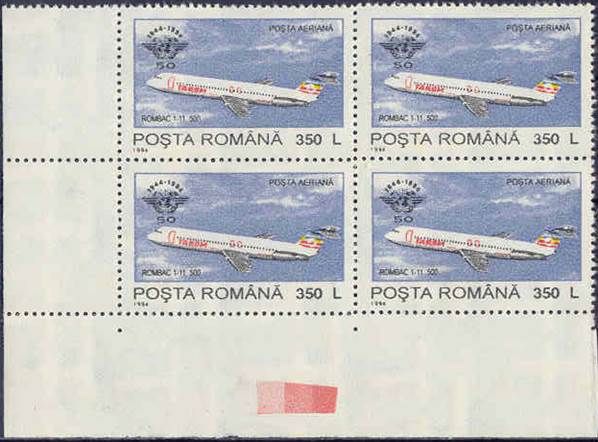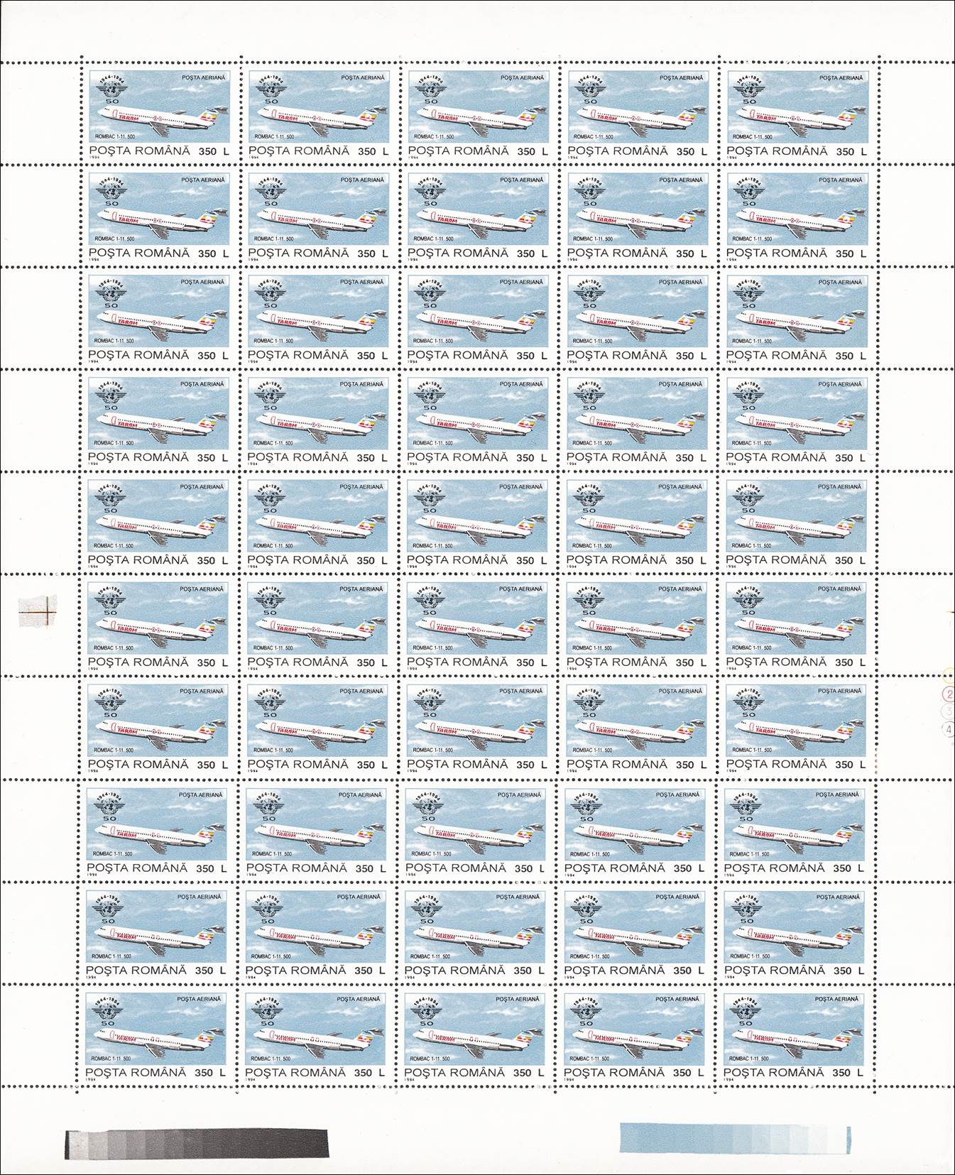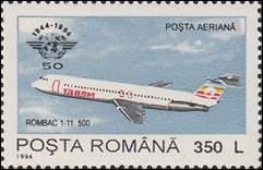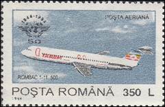 Rombac One-Eleven Series 500 of TAROM airline. Printed on paper with and without watermarks. |