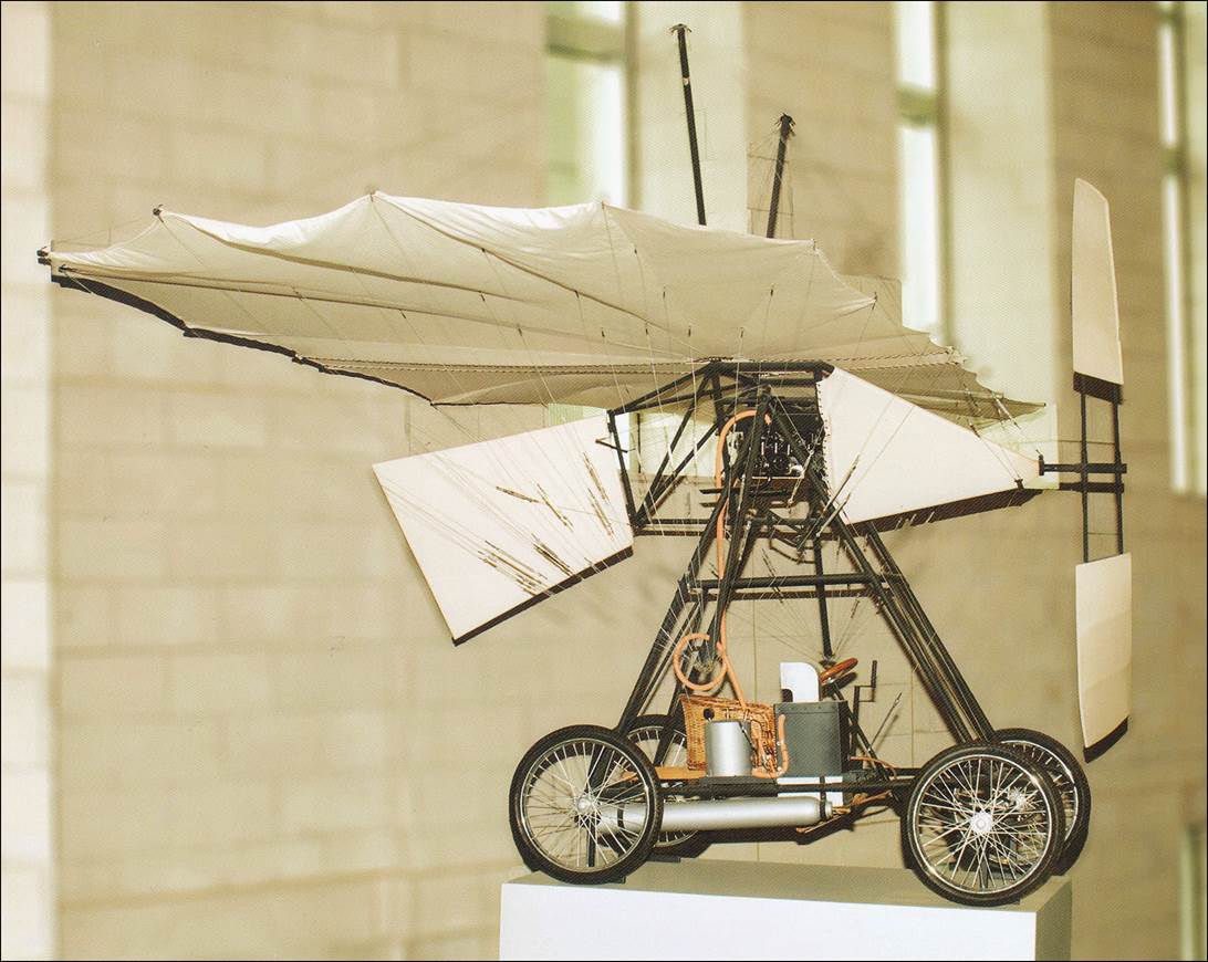At ICAO Headquarters, outside the registration area and perched atop a section of wall near the giant escalators is a full-scale replica of the aircraft Vuia Nr. 1, offered by Romania in 1998. Born in 1872 in Transylvania, in the then Austro-Hungarian Empire, Traian Vuia developed an early interest in heavier-than-air machines. In 1902, he left for Paris, the place for all European inventors concerned about flight. On the basis of a patent obtained in 1903, he developed his winged-automobile. On 18 March 1906, in Montesson, France, the Vuia Nr. 1 flew over a distance of 12 metres at the height of 0.6 metres; it was the first airplane with variable wing angle and the first to use pneumatic, rather than solid-rubber tires on landing gear. Later, Traian Vuia improved his first aircraft and also built helicopters.