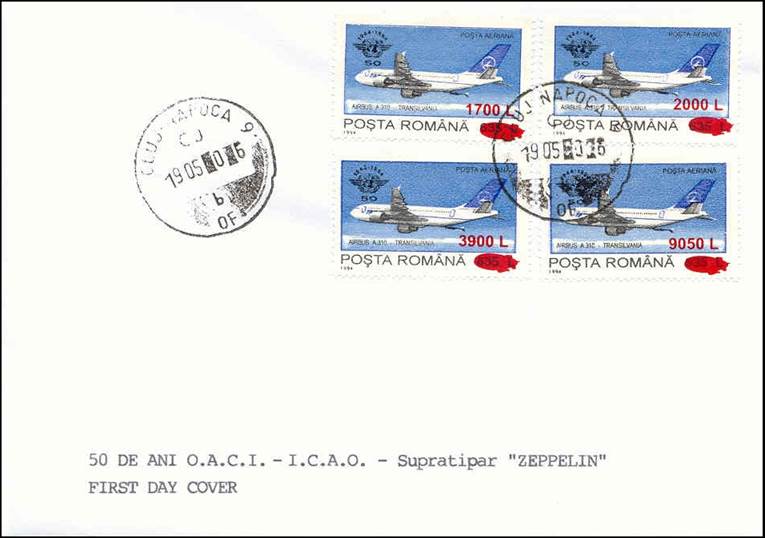 First Day Cover commemorating the National Philatelic Exhibition Aeromfila held in Bacău, Romania, from 20 to 26 July 2000. It paid tribute to the 30th anniversary of the establishment of Romanian Aerophilatelic Commission. The cancel shows a Yak-52. It is interesting to highlight that the Airbus A-310 shown on the cachet is covered with reproductions of Romanian stamps related to aviation, including one of this issue (see the tail of the aircraft). The Yakovlev Yak-52 is a Soviet primary trainer aircraft which first flew in 1976. It is still being produced in Romania by Aerostar, which gained manufacturing rights under agreement within the now defunct COMECON socialist trade organization. The Yak-52 was designed originally as an aerobatic trainer for students in the Soviet DOSAAF training organization, which trained both civilian sport pilots and military pilots.