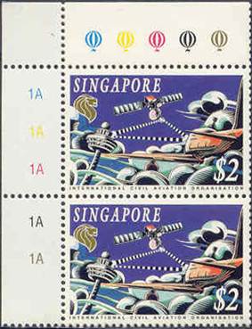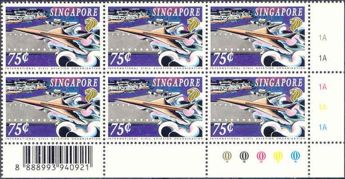 Features an aircraft of the future, Airbus A3XX, a double-decker plane set against the familiar Singapore’s Changi Airport control tower. The design of the future aircraft seems to be closer to the preliminary design specifications of the Aerospace or Deutsche Airbus, although the philatelic notice mentions Boeing 747‑X.