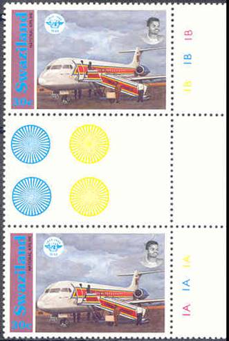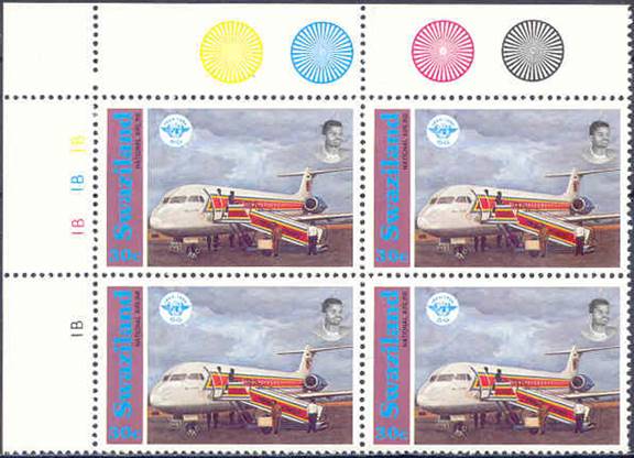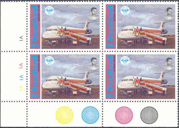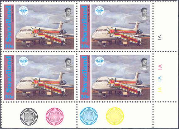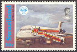 Fokker 100 of the national airline Royal Swazi National Airways at that time; ICAO 50th anniversary logo. |