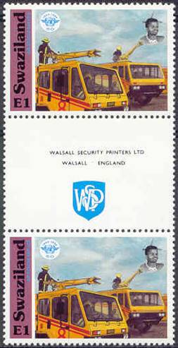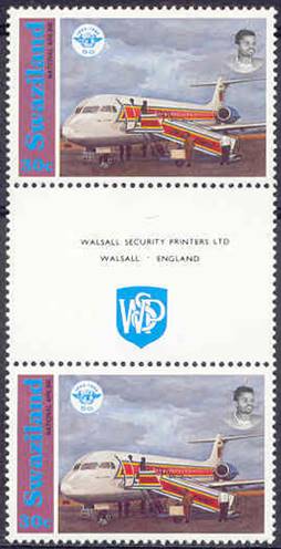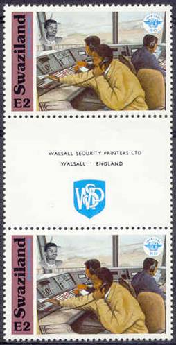 Gutter pairs. The gutter shows the name of the printer (Walsall Security Printers) and the emblem of this company. |