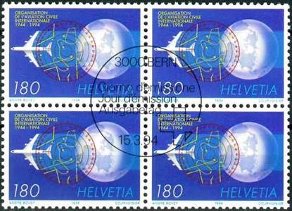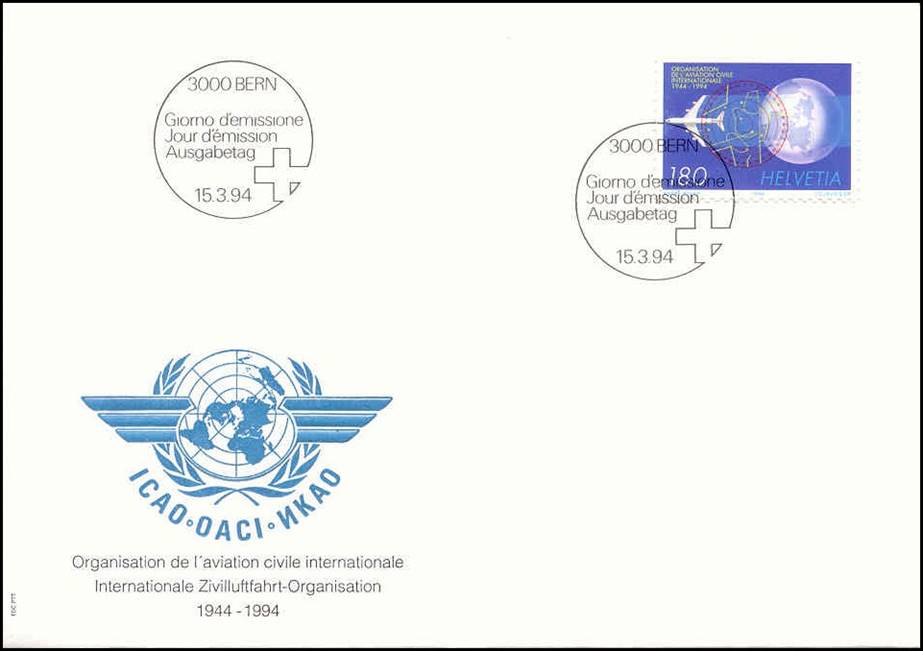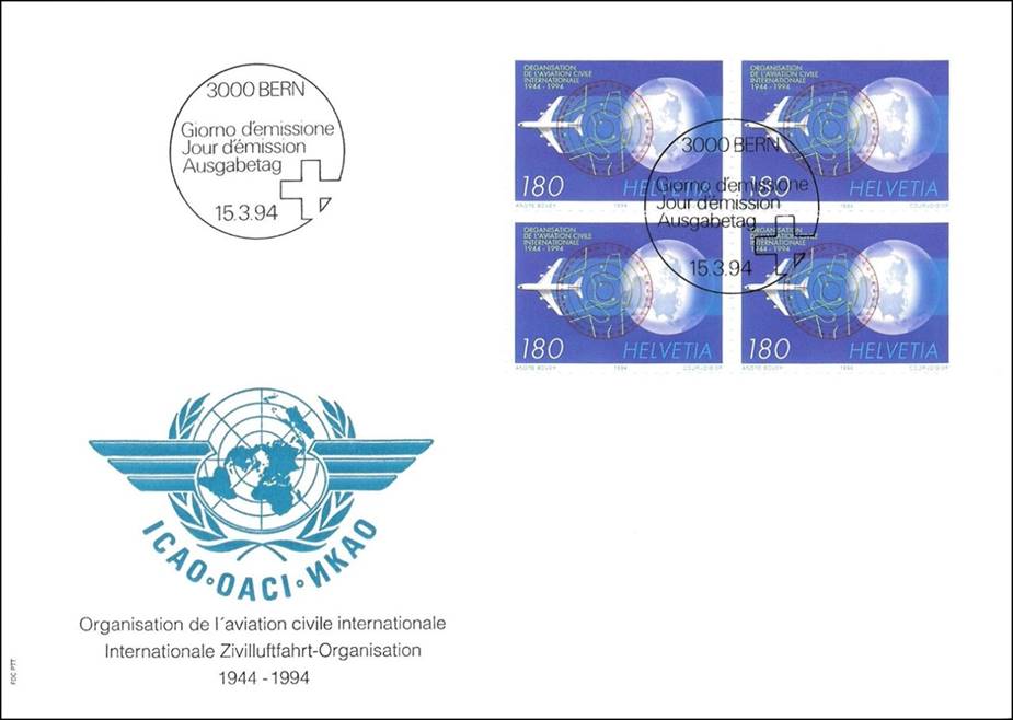 Dual cancel combo, i.e. Switzerland and Canada. The Canadian stamp was issued on issued on 16 September 1994 to commemorate ICAO’s 50th anniversary.
