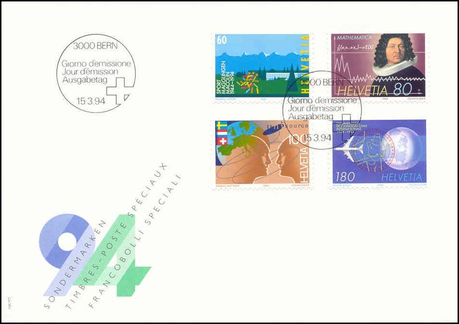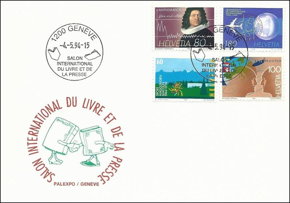 With this First Day Cover, the four stamps of this issue were used by the Swiss PTT to commemorate the 8th Salon international du livre et de la presse, held in Geneva from 4 to 8 May 1994.