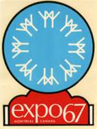 UN Pavilion at Expo 67. Stamp designed by Olav. S. Mathiesen, Denmark, based on original photograph by M. Drummond. |