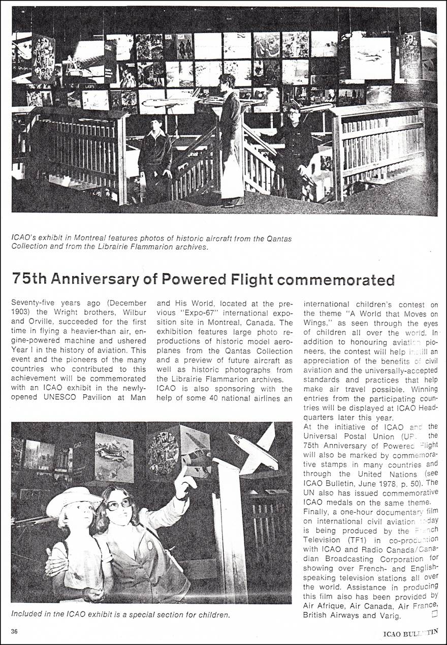 Excerpt from the ICAO Bulletin related to the 75th anniversary of the Wright Brothers. July 1978.