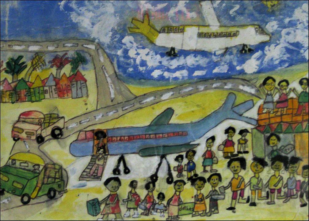 On 20 November 1959, the United Nations General Assembly adopted the Declaration of the Rights of the Child, hand-copied for the Courrier de l’UNESCO by French Sophie Brabyn, 7 years old at that time. Twenty years later, this Magna Carta for children’s rights was still in abeyance, if not entirely violated. In order to remind the world at large and rally public opinion, 1979 was proclaimed by the United Nations International Year of the Child. To mark the International Year of the Child, the 75 years of powered flight and with the help of some forty national airlines, ICAO held an international children’s art contest throughout 1978 on the theme A World that Moves on Wings. The 100 best entries in this contest became part of a travelling display for exhibition throughout the world. Along with their national media, participating airlines or organizations (one for each country) held domestic contests to select winning entries for the international exhibit, which sought to show how children view aviation at that time. Criteria for selection included spontaneity and freshness of expression reflecting the continuing excitement with or expectations of civil aviation. In addition to honouring aviation pioneers, the contest would help instil an appreciation of the benefits of civil aviation and the universally accepted standards and practices that help make air travel possible.