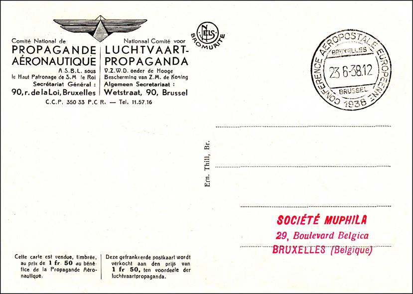 16 to 25 June 1938 - Brussels – European Air Mail Conference