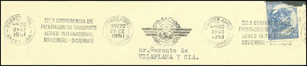 Cut showing slogans related to the third Session of the Facilitation (FAL) Division, held from 21 November to 7 December 1951 in Buenos Aires, Argentina.