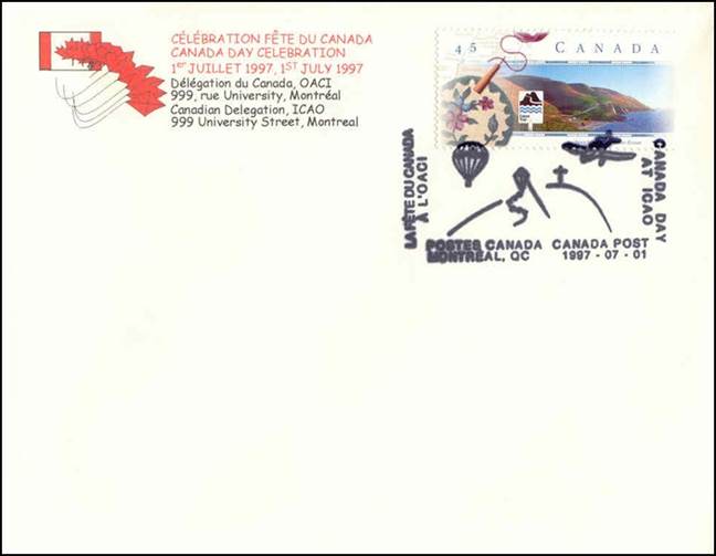 The Canadian Delegation to ICAO prepared this cover for the celebration of Canada Day in 1997.
