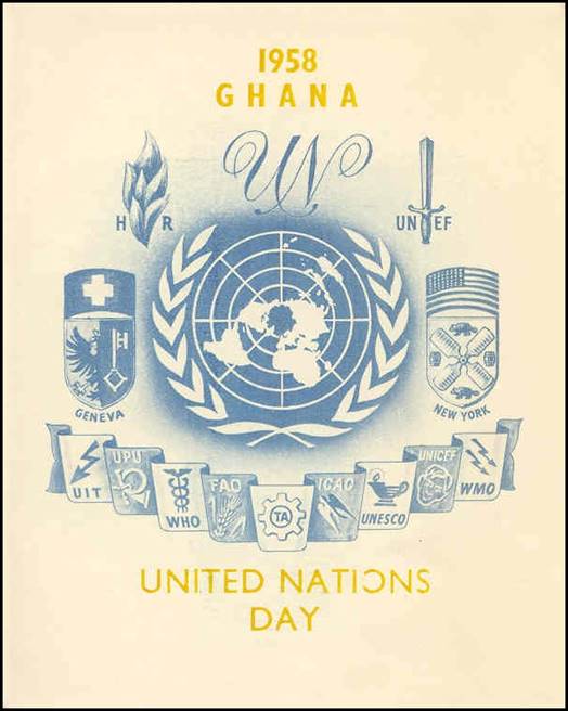 GHANA United Nations Day 24 October 1958 Font and centre pages of the presentation folder. Only 300 of these folios exist. |