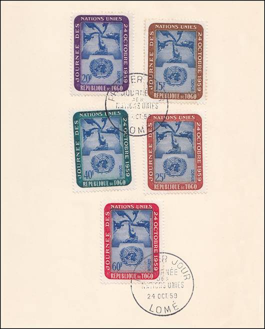 TOGO United Nations Day 24 October 1958 Font and centre pages of the presentation folder. |