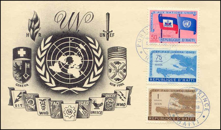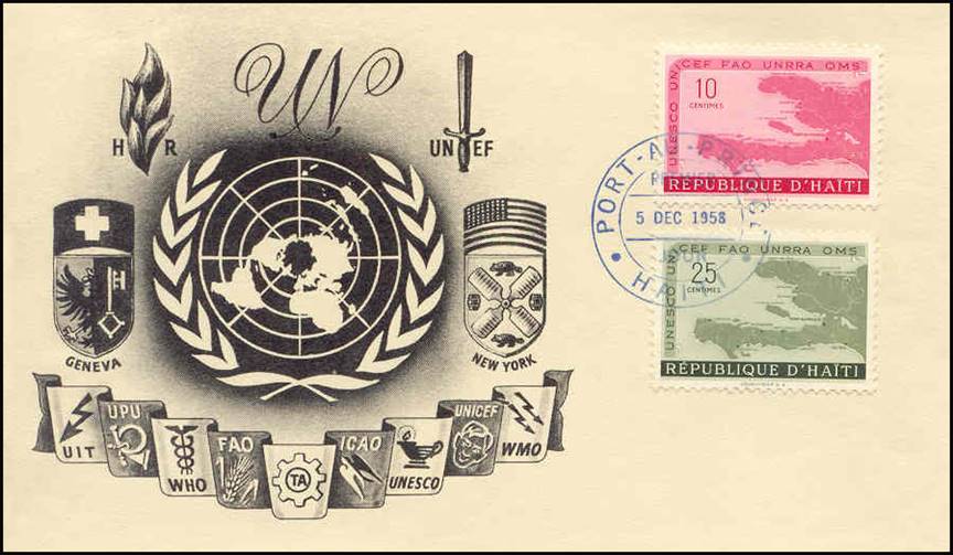 HAITI First Day Cover issued on 5 December 1958. Tribute to the United Nations. |