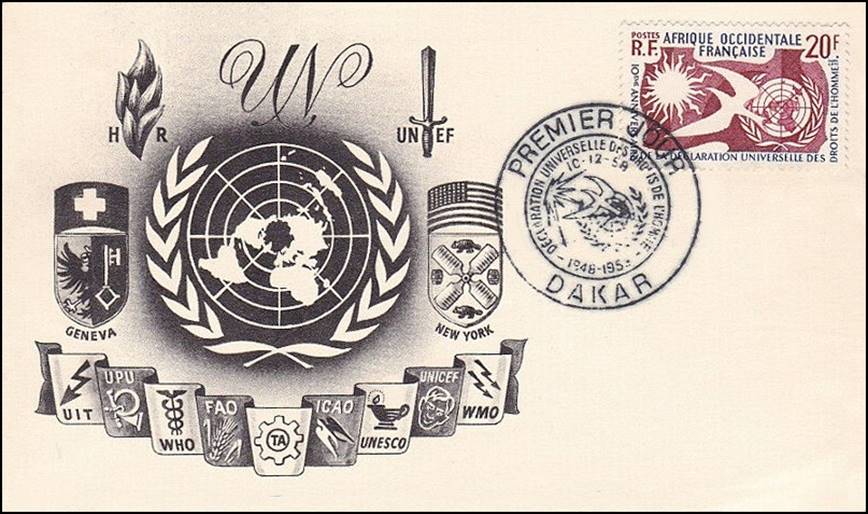 AFRIQUE OCCIDENTALE FRANÇAISE (See footnote 3) First Day Cover issued on 10 December 1958. 10th Anniversary of UN Universal Declaration of Human Rights. |