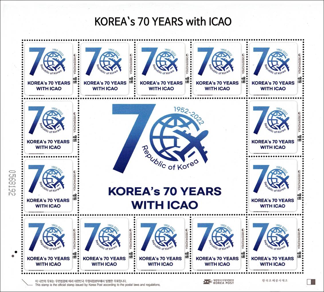 The Post Office of the Republic of Korea released a miniature sheet during the event to commemorate the 70th anniversary of its adherence to the Chicago Convention (see link at Korea – 70th Anniversary); its design was used as the emblem on the presentation material of the Legal Seminar.