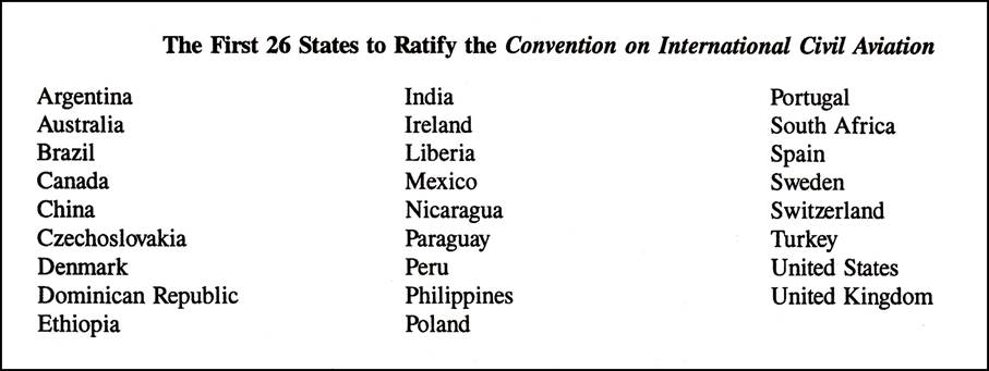 On 5 March 1947, Spain was the 26th state to deposit, with the Government of the USA (which serves as the depositary of the Chicago Convention), its instrument of ratification to the Chicago Convention. Consequently, this Convention came into force on 4 April 1947 (i.e. 30 days later), among the states having thus ratified.