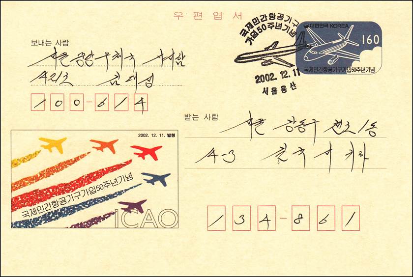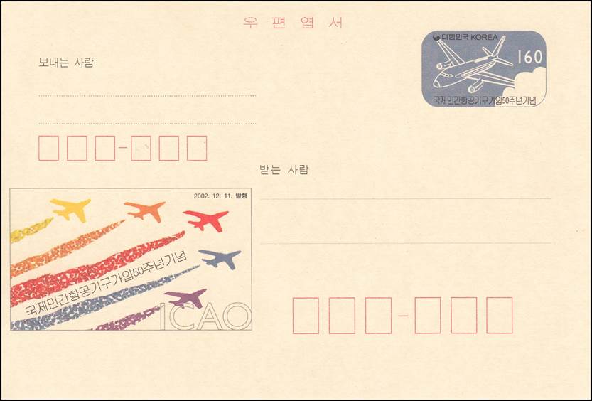 Republic of KOREA – 11 December 2002 50th Anniversary of admission to ICAO – Multicolored aircraft trails
