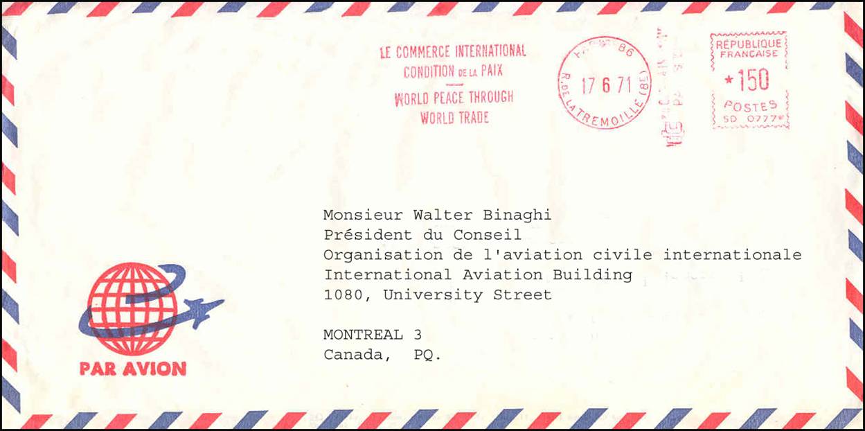Mail sent to Mr. Binaghi - Postmarked on 17 June 1971.