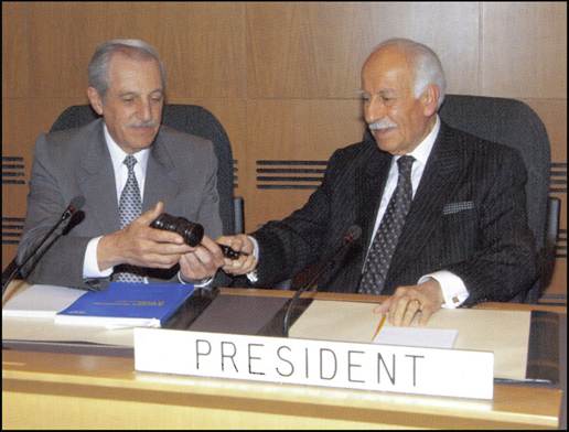 2006 - Dr. Kotaite passes the Council Chamber gavel to his successor, Mr. Roberto Kobeh Gonzalez.