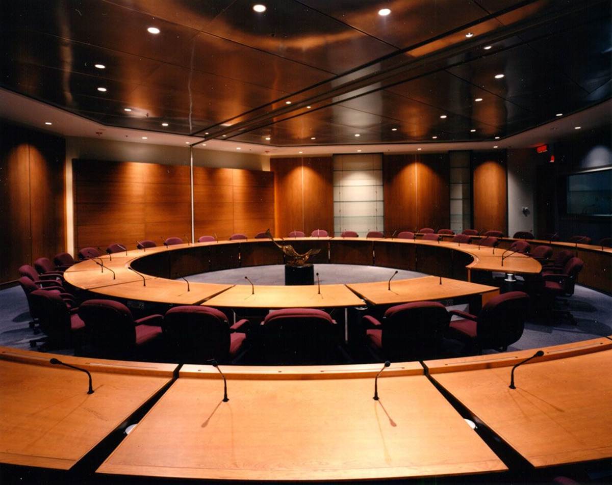 The Council Chamber, as designed by Luc Plante and Richard Godbout, Architects, for Provencher Roy et Associés Architectes. |