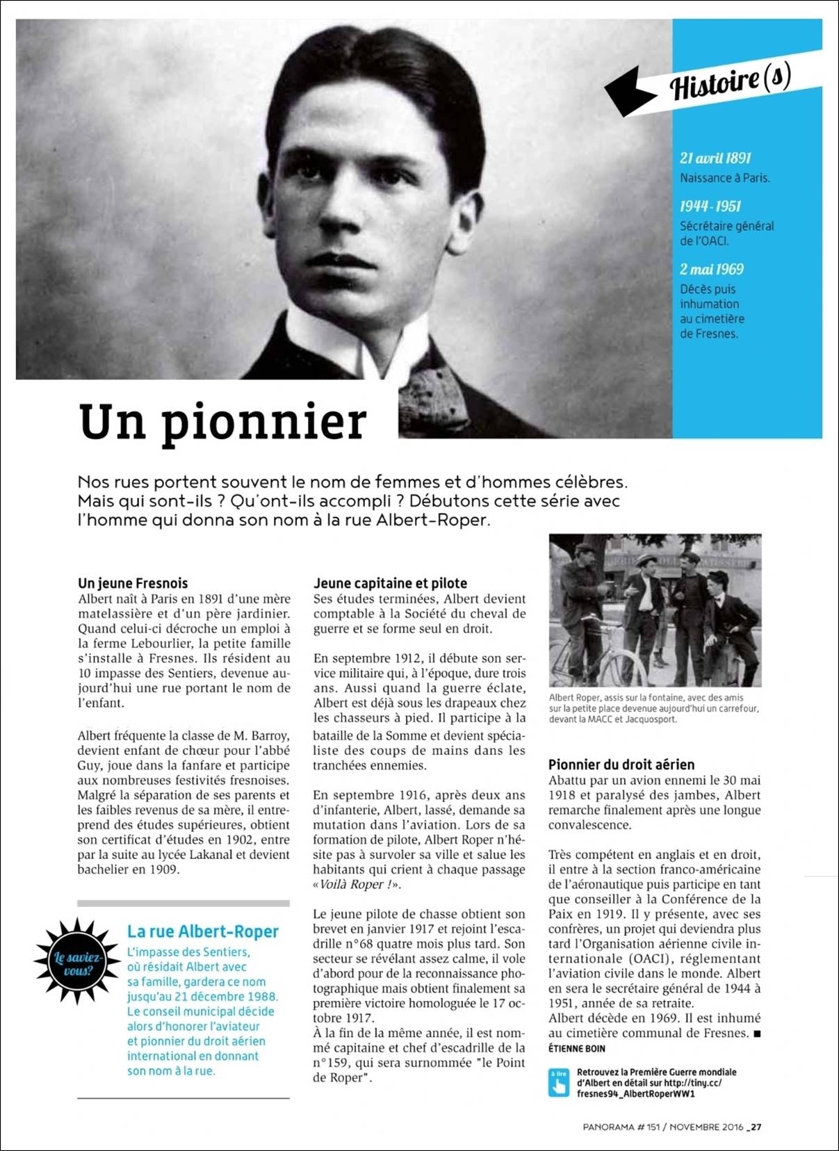 Details of Albert Roper's grave at the Fresnes Communal Cemetery, France. Albert Roper: 1891-1969. 2019 marked the 50th anniversary of the passing away of Albert Jean François Roper; that year also marked the 100th anniversary of the signing of the Paris Convention (October 1919) and the 75th anniversary of the signing of the Chicago Convention (December 1944). |