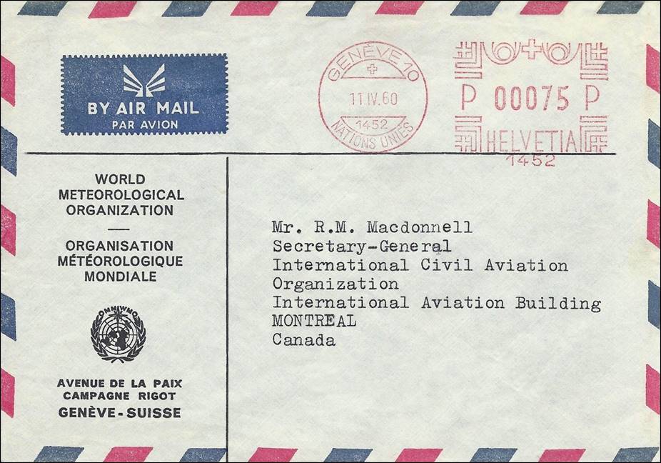 Service metered cover sent from WMO to Mr. R.M. Macdonnell, Secretary General. Postmarked on 11 May 1960.