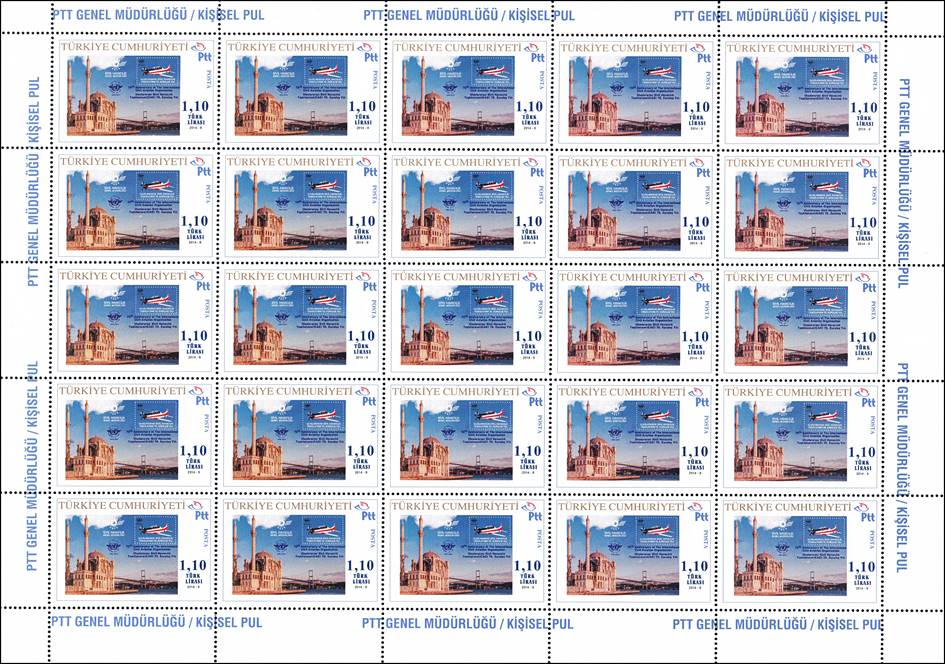 Full sheet of 25 stamps. In the margin, is the following text: PTT GENEL MÜDÜRLÜĞÜ / KİŞİSEL PUL meaning PTT DIRECTORATE GENERAL / PERSONAL STAMP.
