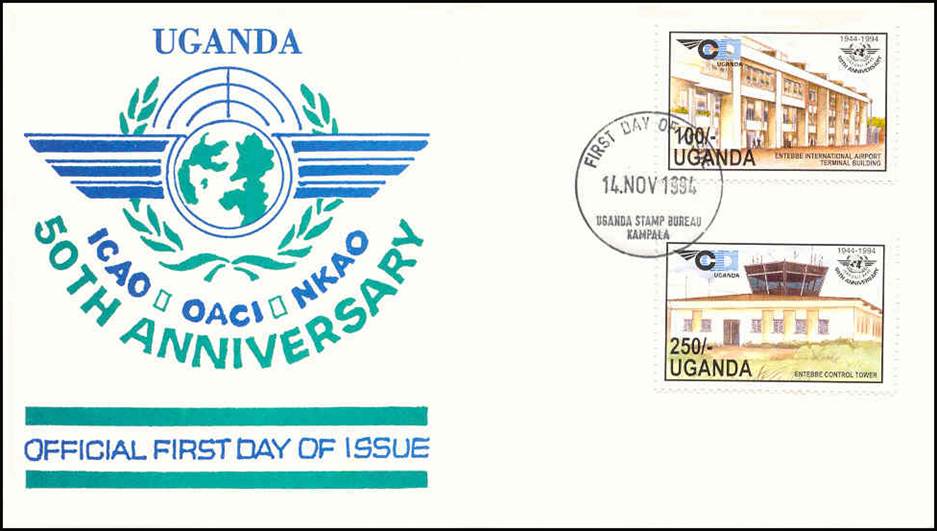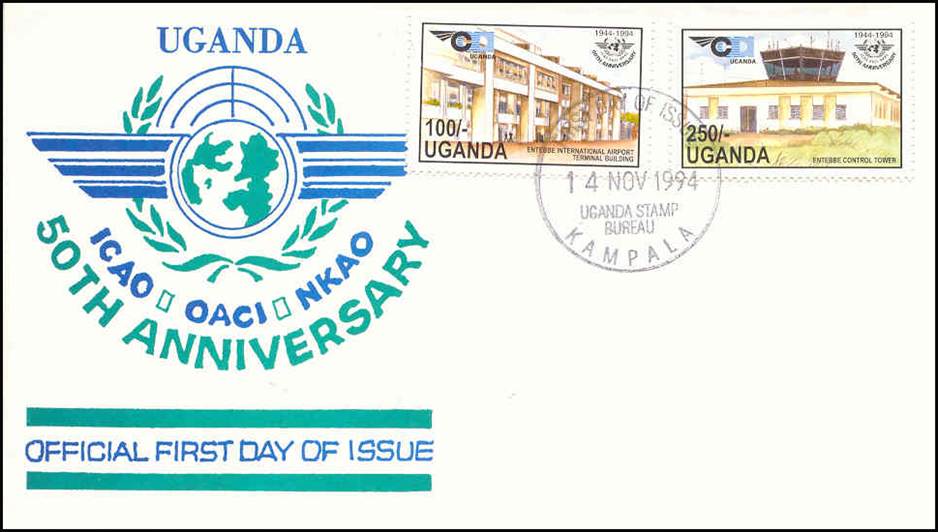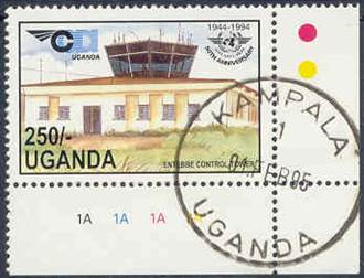 Background: The two stamps of this issue highlight important aspects of the international airport in Entebbe, a short distance away from the capital of Kampala.