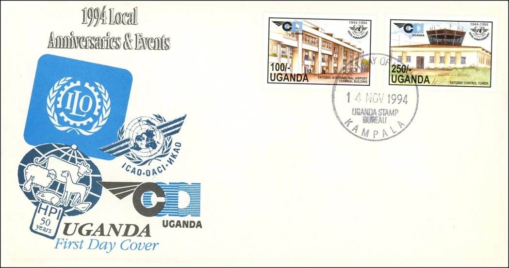The above cover celebrates Anniversaries and Events held/commemorated in Uganda in 1994 (see cachet from left to right, top to down):