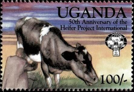 On his return to the US in 1938, Dan West took the idea to his neighbours and church resulting in a volunteer Heifers for Relief Committee in 1939. It gained approval as a national project in June 1942; in January 1943, it was renamed Heifer Project Committee. The first shipment of 17 heifers left for Puerto Rico on 14 July 1944. On that day, one man’s vision became a reality. The first cows were named "Faith", "Hope", and "Charity", and recipient families had to promise that they would donate the first female calf to another poor family. Later known as The Heifer Project, its continuing process would geometrically multiply animals worldwide as hundreds of cattle produced thousands of calves, and those thousands would likewise produce millions. Following the death of Dan West in 1971, the project was incorporated as Heifer Project International (HPI). Heifer International started working in Uganda in 1982. |
