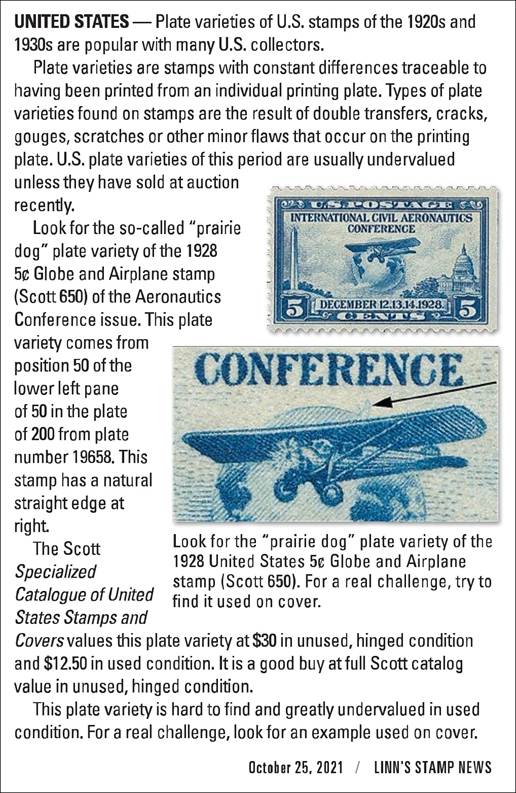 Excerpt from the Linn’s Stamp News Journal dated 25 October 2021, Vol. 94, No. 4852, page 34: “Tip of the Week”.