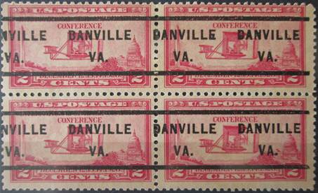 DANVILLE, VA Precancels - Block of 4 stamps. Danville is an independent city in the Commonwealth of Virginia in the United States, located in the Southside Virginia region and on the fall line of the Dan River. |