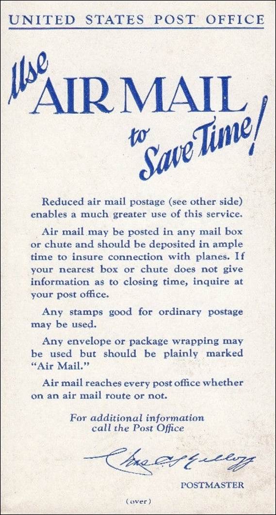 Although both stamps in this series feature airplanes, they were regular postage stamps, not airmail stamps. But since 5-cent was the then airmail postage rate, the higher value was often used for airmail by using an approved airmail envelope or by adding the legend Via Air Mail. Being large stamps of landscape orientation, they were less popular with postage users than common stamps with portrait orientation. The airplane motif of the stamps confused some postal workers; thinking that the stamps signified air mail, postage due was occasionally charged to recipients, since the airmail rate was higher than the normal rate. In reality, the stamps were for general postage and not for airmail at all. Third Assistant Postmaster General Robert Regar prepared a memo that addressed the issue. "They are valid for all purposes," he wrote; however, when used for air mail delivery, the stamp had to be used on an approved airmail envelope or with the words “Via Air Mail” written on the envelope.