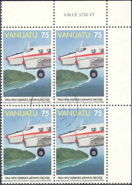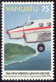 de Havilland Australia DHA-3 Drover of New Hebrides Airways (1966). In 1966, New Hebrides Airways was established and initially used the three‑engine de Havilland DHA-3 Drover on routes within Vanuatu. This Australian designed aircraft, shown over the island of Erromango, was purchased from Trans Australian Airways (TAA). It had previously been in use by the famous Flying Doctor service in Queensland. |