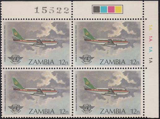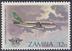 Boeing 737-2M9(A) (circa 1983) of Zambia Airways; registered 9J‑AEG in Zambia. |