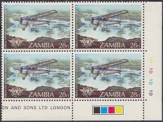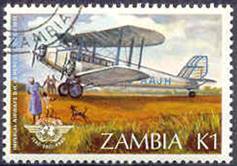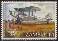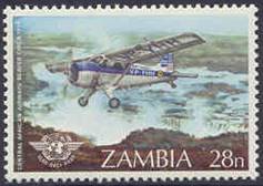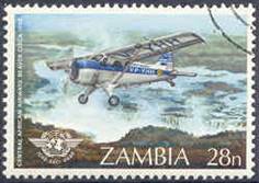 de Havilland Canada DHC-2 Beaver (circa 1954) of Central African Airways registered VP‑YHH, part of the British Colonial Civil Aircraft.This stamp was surcharged on 5 July 1991 with K2 (see at the following link: Zambia – 1991- Surcharged Stamps). |