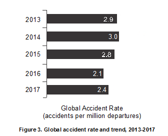 As for aviation safety, there were 88 aircraft accidents for scheduled commercial air transport operations in 2017, an increase of 17 per cent from 2016, when 75 accidents were reported. This is according to an analysis of global accident data involving commercial air transport aircraft with a maximum certificated take-off mass of more than 5 700 kilograms. The number of fatalities in scheduled operations worldwide decreased to 50 fatalities, which represents a substantial decrease from 182 in 2016 and the lowest level on record of the past ten years. The number of fatal accidents decreased from 7 in 2016 to 5, also the lowest in recent records. The global accident rate increased to 2.4 accidents per million schedule departures versus 2.1 accidents per million scheduled departures in 2016.